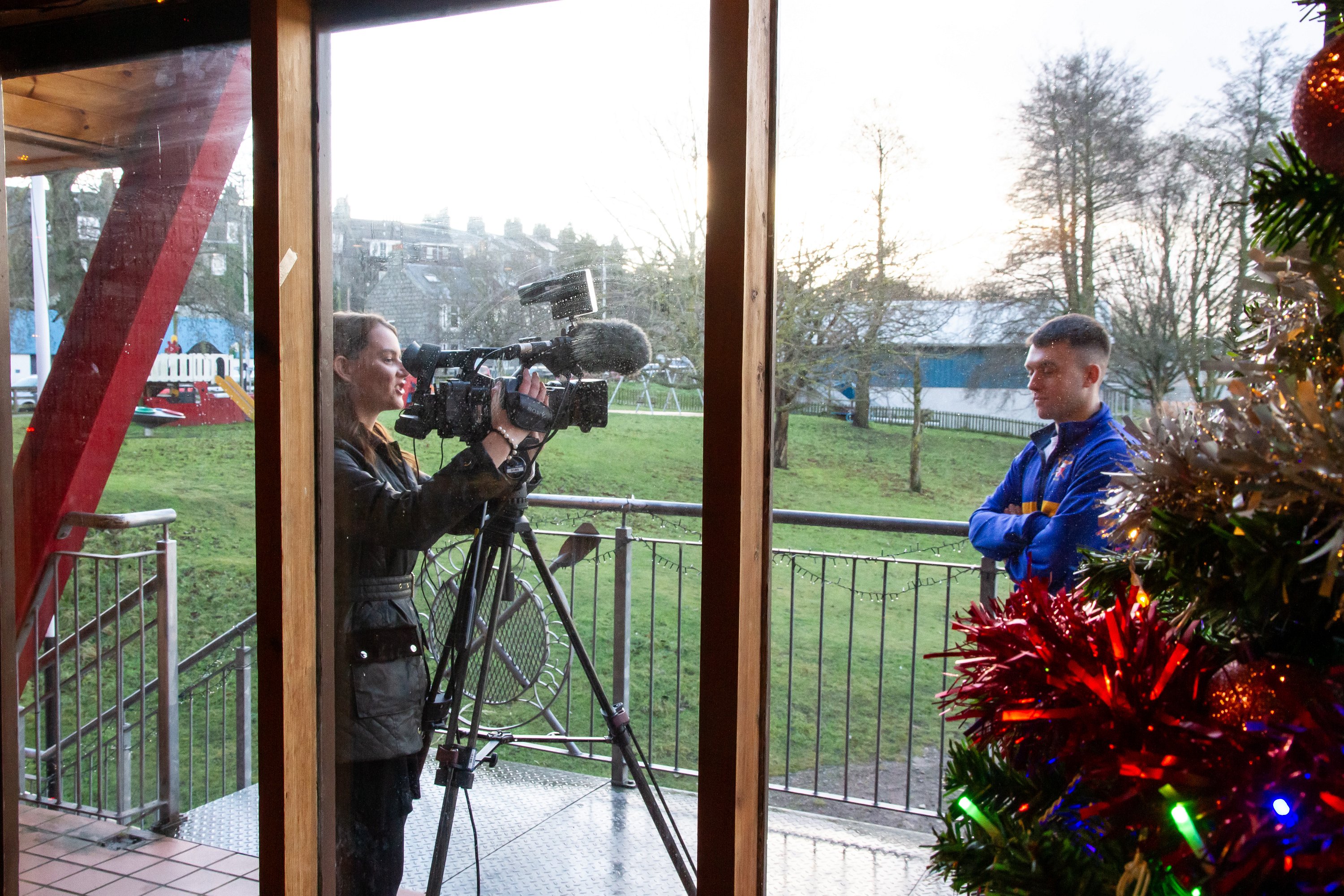 Jill Adam (RGUBC) and Jakub Zbikowski (AUBC) Presidents face up to issue the challenge for the 2024 Universities of Aberdeen Boat Race (to be held on 24/2/2024)